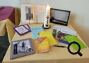 door op het vergrootglas of de dia te klikken en vervolgens te swipen voor de volgende foto