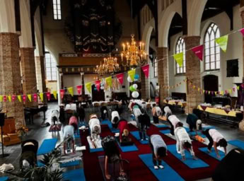 De activiteiten Ladies Only, met yoga en lunch (zie foto), en vertoning van een ‘film met een boodschap’ bleken opnieuw erg in trek. De multiculturele lunch was een daverend succes. Zelden waren zoveel verschillende culturen in één kerkgebouw bijeen.