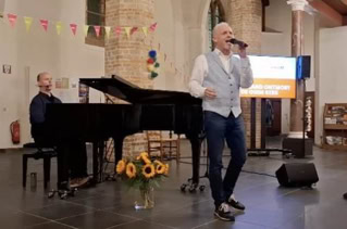 Daarna volgde een gevarieerd programma met zang, piano en orgel. Het een en nader werd aan elkaar verbonden door dominee Richard v.d. Keur, voorganger van VVP’s Maasdijk en Honselersdijk. Samen met zijn vaste begeleider Rene Kaaij vertolkte hij liederen en werd met boekinformatie een verhaal aan elkaar gebreid. Hierin verweven waren enige orgelstukken uitgevoerd door Niels de Klerk, organist van de Oude Kerk. Het slotwoord werd uitgesproken door Gerard Hofman, voorzitter van VVP Maasdijk.