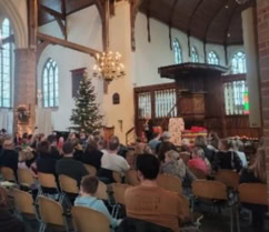 Aan het begin van het nieuwe jaar blikken we nog even terug op de kinderkerstviering die we samen met de Ontmoetingskerk organiseerden. Ds. Hazeleger heette de bezoekers welkom en een aantal kinderen stak de kaarsen aan. Vervolgens nam Emilia van kindertheater De Regenboog de kinderen op een enthousiaste manier mee in haar interactieve voorstelling met als centraal thema Hoop. Met wat lekkers en goede wensen voor de kerstdagen werd de bijeenkomst afgesloten.
